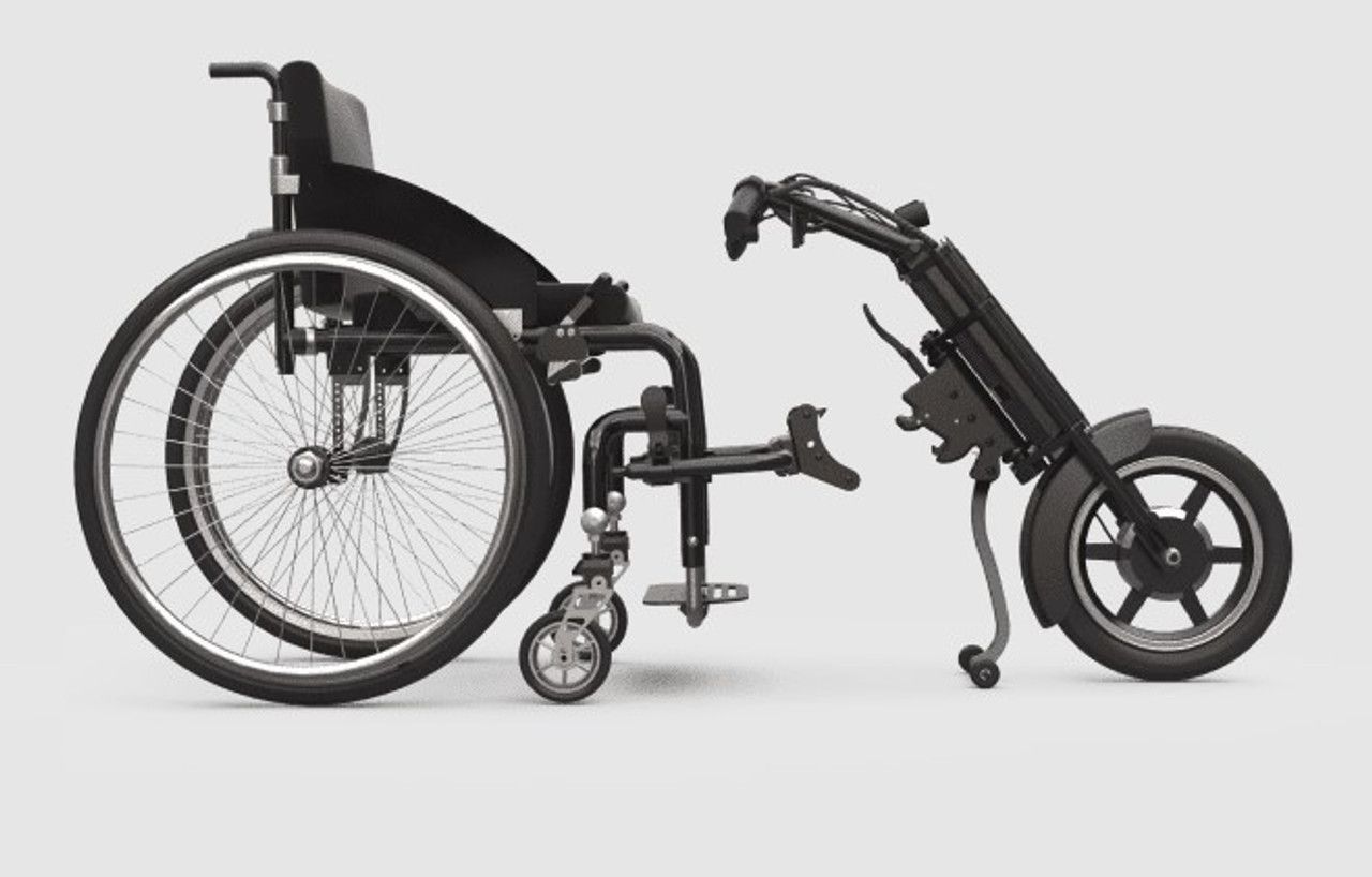 Con un motor de 450W, autonomía de 25 km y una velocidad máxima de 20 km/h (5 velocidades). El handbike eléctrico UNAwheel Maxi se adapta tanto a sillas básicas, activas, infantiles o de interior.