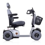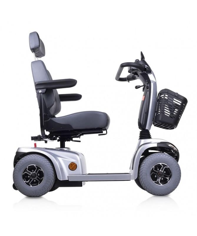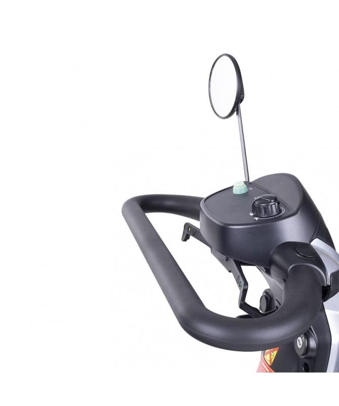 La Scooter para personas mayores La Palma viene equipada de serie con una serie de extras que la hacen una scooter muy atractiva en cuanto a su calidad precio; asiento anatómico de gran comodidad, el respaldo con forma y reposacabezas ajustable en altura, los reposabrazos ajustables en altura , anchura. Todo esto ayuda a que el usuario de la silla se coloque en la postura más correcta y cómoda a la hora de conducir.