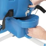 De altura graduable para acomodarse sobre cualquier WC, bascula suavemente con ayuda de pistones neumáticos para facilitar la postura más cómoda tanto al usuario como al cuidador. Robusta y fácil de maniobrar, apta para personas de hasta 100 kg.