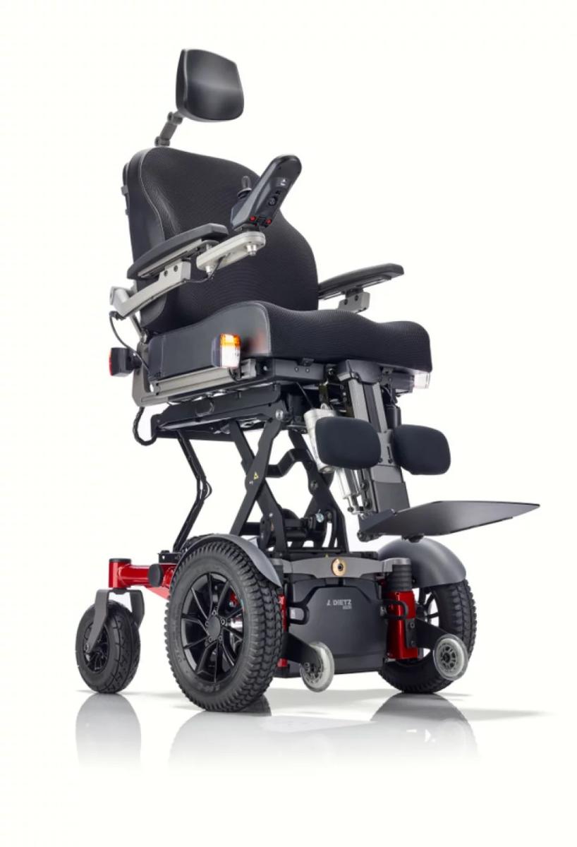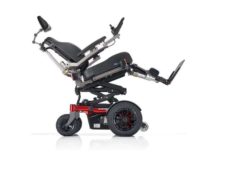 La silla de ruedas eléctrica Sango FWD de FPL Mobility con tracción delantera permite superar mejor los obstáculos en exteriores.