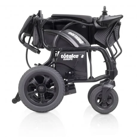 Se trata de una silla de ruedas con un plegado similar al de las sillas de ruedas manuales, simplemente tirando del asiento hacia arriba queda plegada con una medida de 31,5 cm de ancho. También nos permite plegar el respaldo y los reposapiés para un mejor transporte o almacenaje.